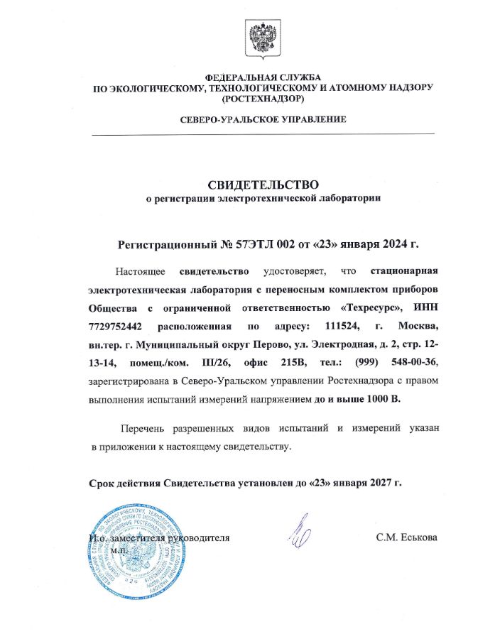 - СВИДЕТЕЛЬСТВО ЭЛЕКТРОТЕХНИЧЕСКАЯ ЛАБОРАТОРИЯ -